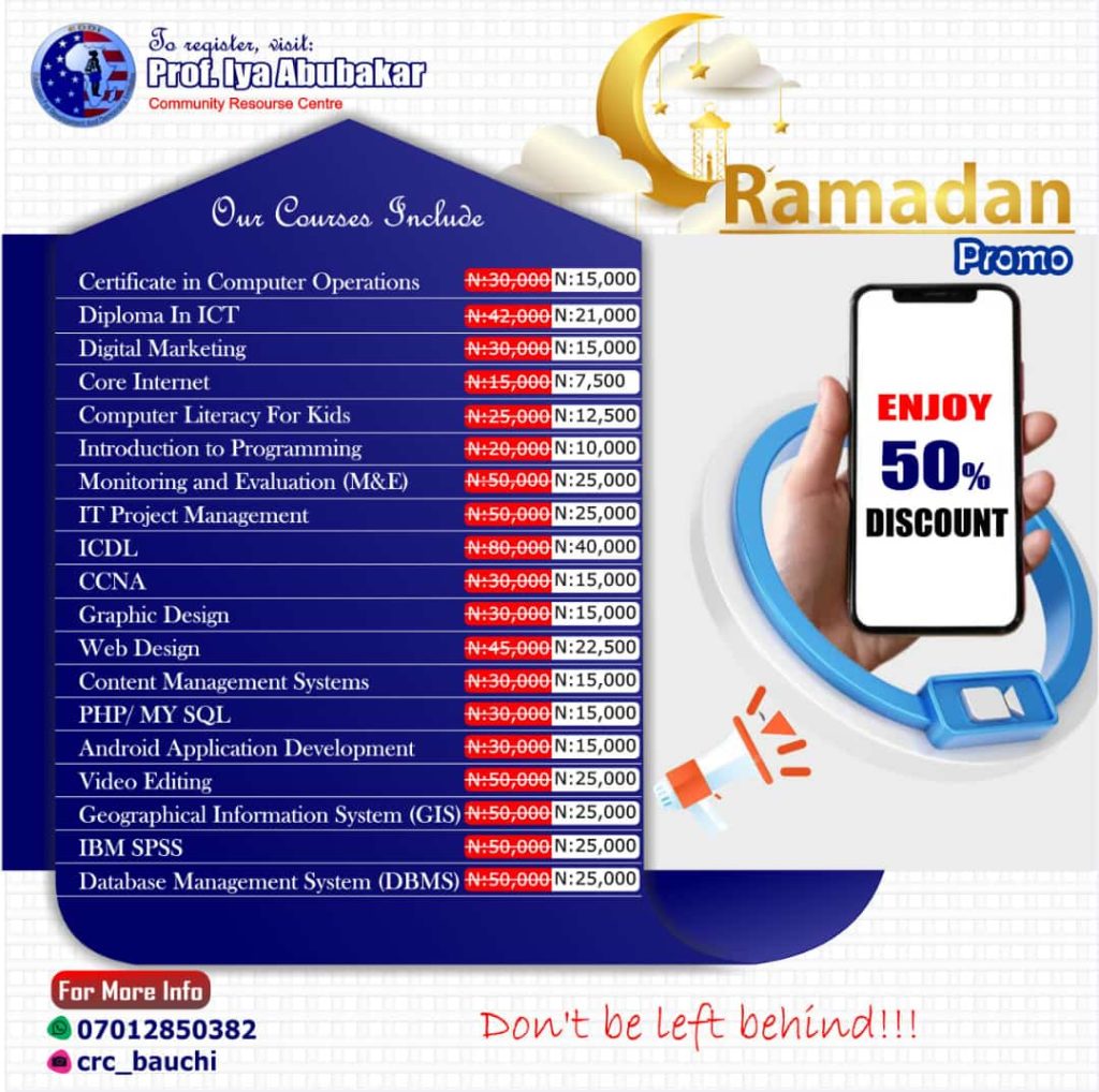 The Center Is Currently Giving Out 50% Discount On All Its Courses As Ramadan Bonanza Hurry Up And Get Registered!!!